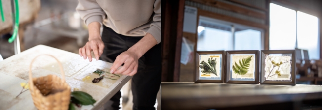 美しい葉っぱ、可愛いきのこや木の実、はたまた鮮やかな小石まで……森で見つけたアイテムを、素敵なフレームの中で飾ってみませんか? 「ときがわ森図鑑」では、まず森や木材を知り尽くした達人たちとフォレストハンティングし、気に入った自然物をピックアップ! 次に、それらの素材を手漉き和紙職人さんと一緒に和紙に漉き込みます。最後に木工職人さんの指導のもと、ときがわ産の杉を使ったフレームの浮(う)づくり加工にチャレンジ。森で見つけた何気ない自然が、あなたのおうちや部屋に彩りを与えるスタイリッシュなアートへと生まれ変わります。ときがわの森と職人技をたっぷり楽しむ一日を、どうぞ。