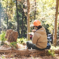 木育や環境学習に大迫力の伐採を通して、お子様の森や木への興味関心を育てることができます。木への親しみも増すことでしょう。