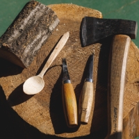 「グリーンウッドワーク」とは、伐ったばかりのみずみずしい生木を、動力を使わず手道具で割ったり削ったりして、暮らしの道具を作る木工のこと。やわらかい生木と手道具の組み合わせにより、繊細で優しい肌合いの日用品づくり(スプーンやスツールなど)が誰でも手軽に楽しめます。自然や木と向き合うことで、五感のすみずみまで意識が向く感覚を覚える“マインドフルネス”な効果も。