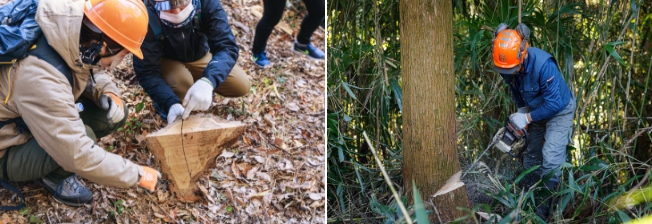 林業体験刈払いや立木の伐採、薪割りなど、日常では馴染みのない林業。ここでは専門家がやさしくレクチャーして貴重な体験をすることができます。 -